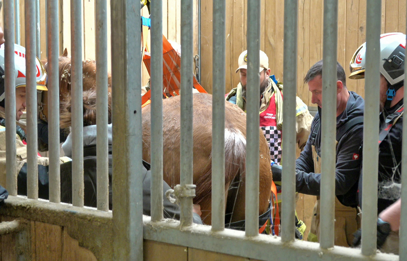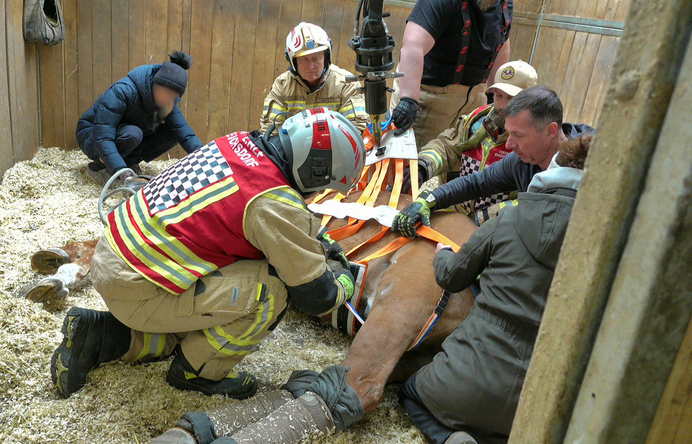 Eine Tierärztin bzw. die Besitzerin von dem 32 Jahre alten Hengst ersuchte über Notruf 122 um Hilfe bei der Feuerwehr, da sie es selber bislang nicht geschafft hatten.