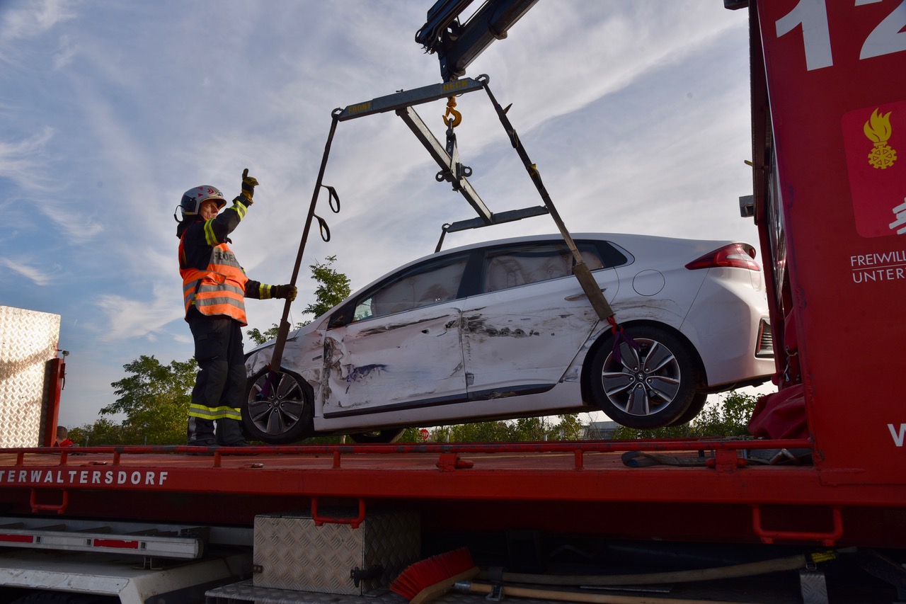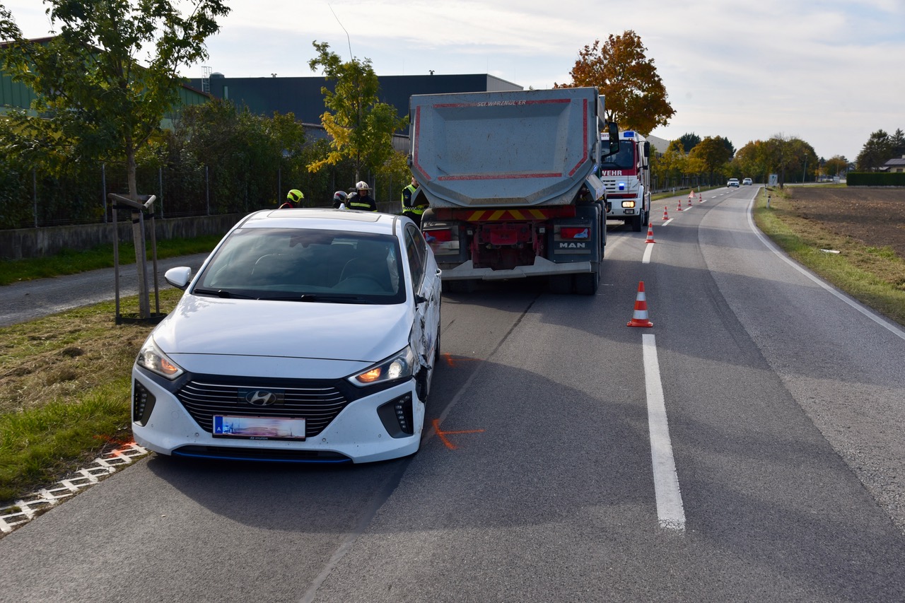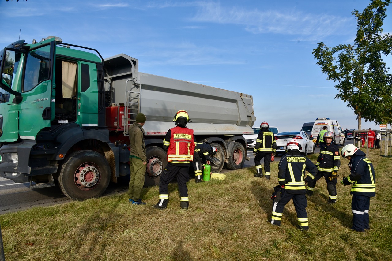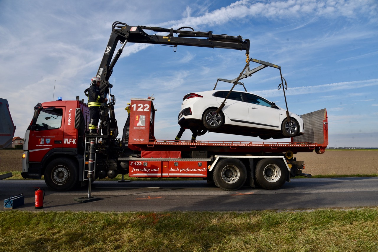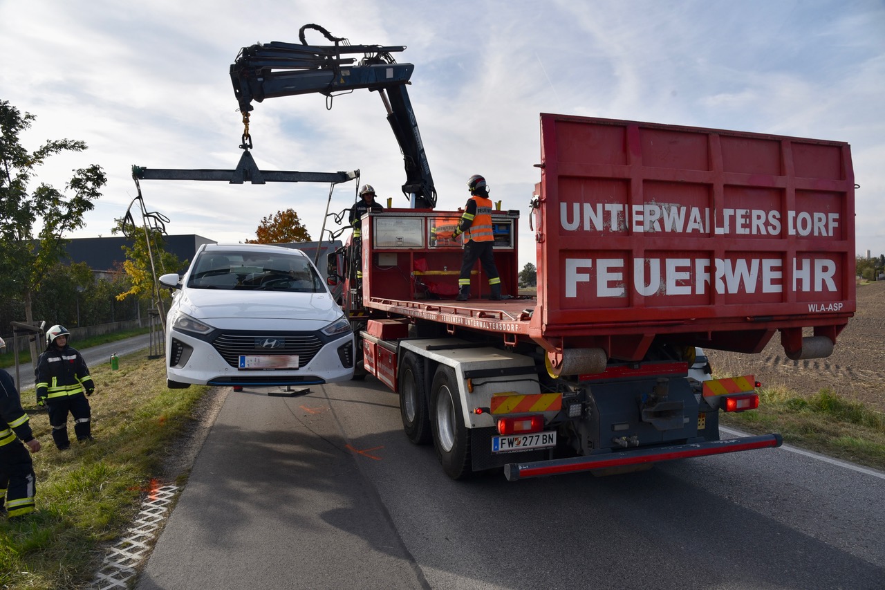 Der Lkw-Lenker blieb unverletzt. Die Feuerwehr Unterwaltersdorf rückte zur Unfallstelle aus und musste ausgelaufen Betriebsmittel binden und den Pkw mittels Kran bergen.