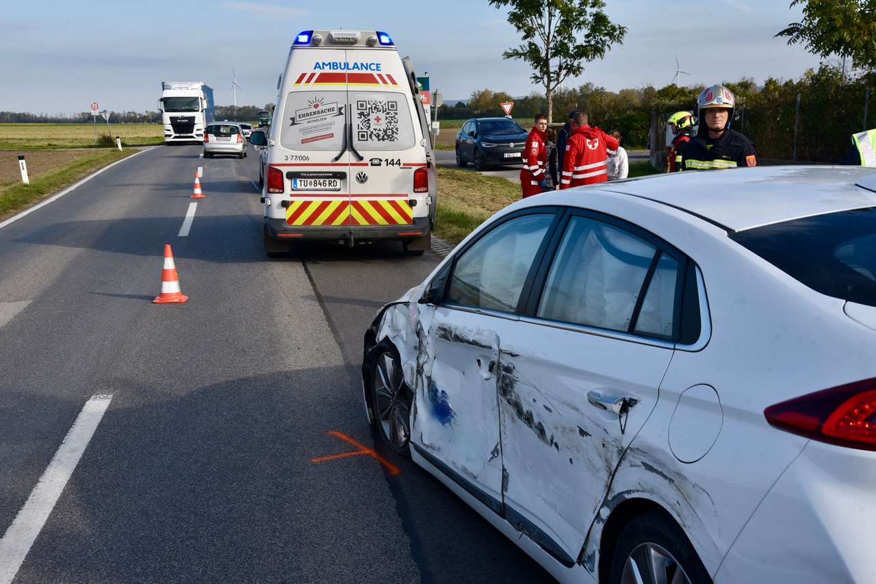 Eine Pkw-Lenkerin war gemeinsam mit ihrem Kind von Unterwaltersdorf in Richtung Reisenberg unterwegs, als ein Lkw einen Überholvorgang startete. Der Sattelschlepper wollte auf die Überholspur wechseln und dürfte dabei den entgegenkommenden Pkw übersehen haben. In der Folge streifte der Lkw den Pkw seitlich auf ganzer Länge.