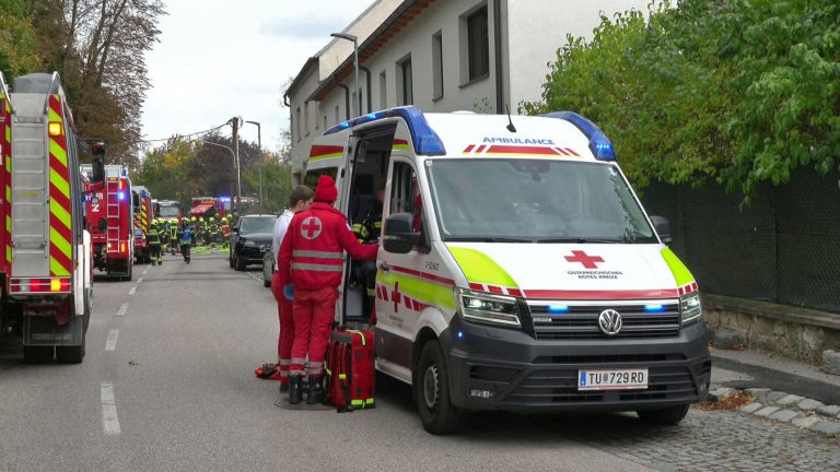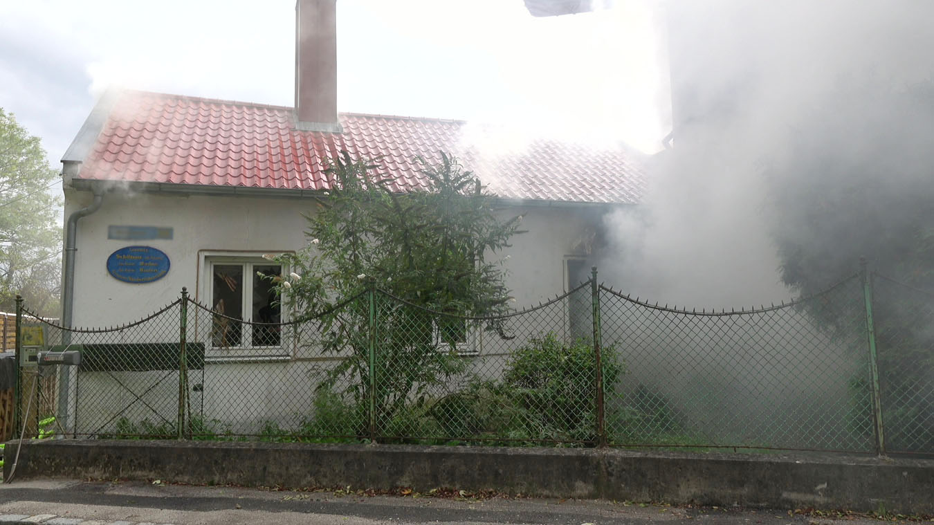 Da sich der Brand im Erdgeschoß dann im weiteren Verlauf auch auf das Dach ausbreiten konnte und plötzlich Flammen aus dem Dachgiebel drangen, wurde ein zweites Hubrettungsgerät – FF Traiskirchen Stadt mit der Teleskopmastbühne und in Folge noch weitere Feuerwehren mit Atemschutzgeräteträgern (FF Leobersdorf; FF Blumau, FF Sooß) zur Unterstützung nachalarmiert.