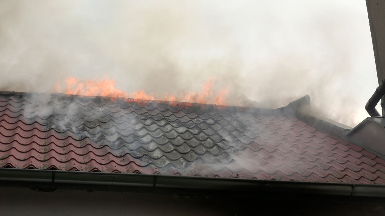 Die Schwierigkeit dabei war jedoch ins Innere des betroffenen Dachstuhls vorzudringen, da die Dachdeckung nicht aus herkömmlichen Dachziegeln bestand, sondern aus Metall-Platten in Ziegeloptik. Da diese mehrmals verschraubt waren mussten zum Öffnen der Dachhaut Motortrennjäger und andere Brech- bzw. Schneidwerkzeuge eingesetzt werden.