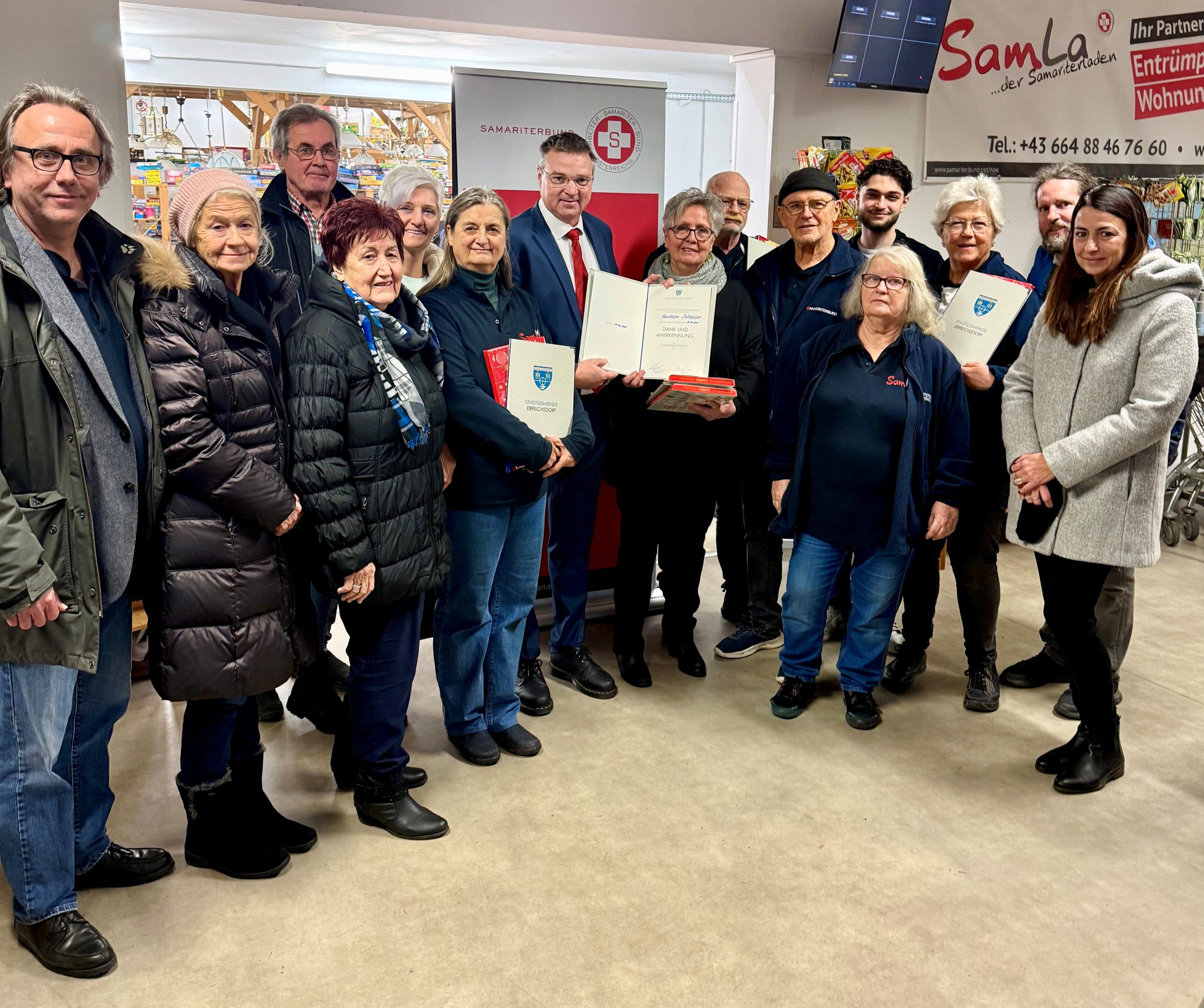 Im letzten Gemeinderat der Stadtgemeinde Ebreichsdorf wurde die Verleihung von Dank- und Anerkennungsurkunden an elf ehrenamtliche Mitarbeiterinnen und Mitarbeiter des Samariterladens (SamLa) und des Samariter-Marktes (SaMa) einstimmig beschlossen.